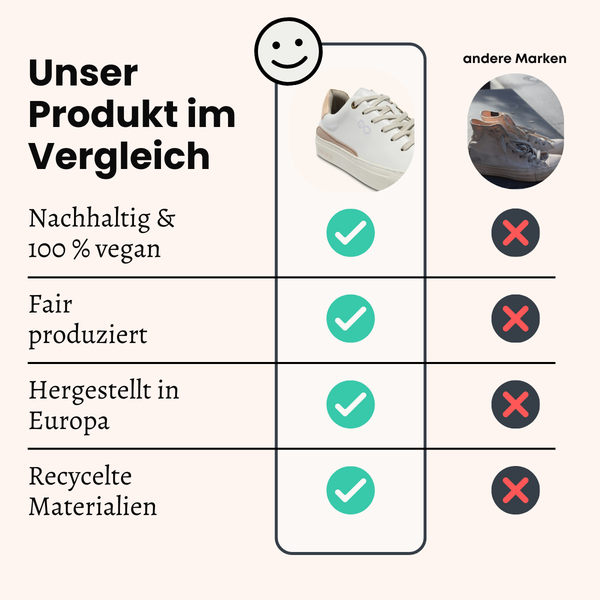 Das Design? Klar. Zeitlos. Alltagstauglich. Tragbar zur Jeans genauso wie zum Statement. Kein Öko-Look, kein missionarischer Vibe – einfach ein schöner, hochwertiger Schuh mit Haltung.